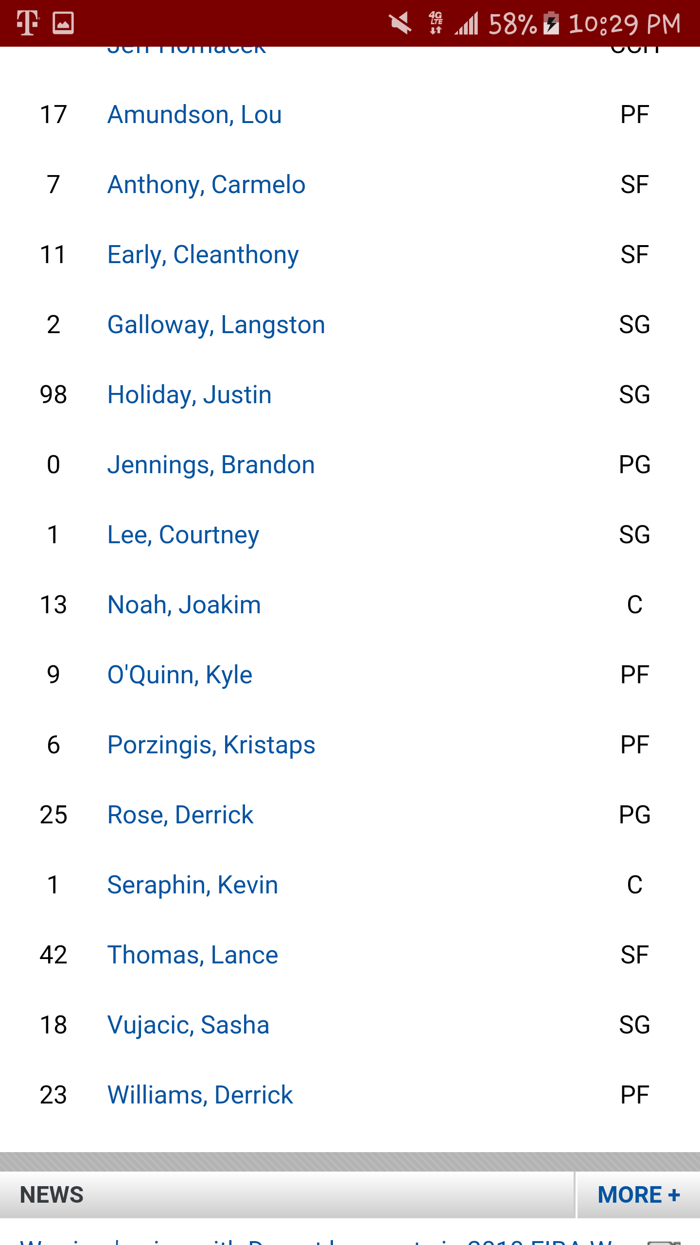 Rose, Lee, Melo, Porzingas, Noah starting 5.