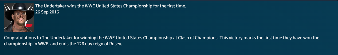 - The Golden Gate Championship has mostly been defined by Starboy Charlie who had the belt when I started. I started developing a storyline for him back in 2025 where he was a workhorse champ who was getting increasingly banged up. You could compare it to OC's lengthy run as International Champ probably. Well, eventually, he lost the belt to Arez. But, Arez's deal had expired that same night so I had to audible a story wherein the title was held up. Charlie then beat Arez to regain the vacant title, continuing to carry it through kayfabe injury. His second title reign then went another 308 days. At one point near the end, Juice Robinson joined the company and was an ally of Charlie's. Eventually he wanted a title shot though, and he got it. He took advantage, won the title, and Charlie had to be stretchered off to finally give him some time off to sell his injuries. Juice became a heel out of this and is now having his run, with Hiromu Takahashi (another recent signing) being his next challenger.