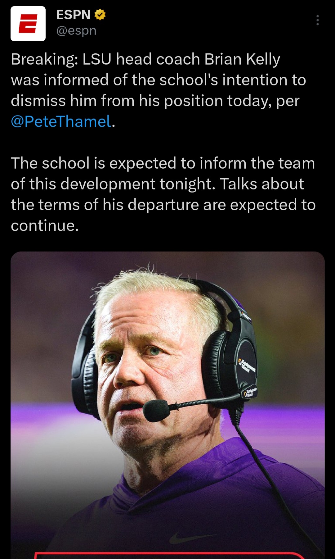 I believe I've made my opinion regarding midseason firings clear so I'll spare you that rant. I know just the guy to replace Brian Kelley: Deion Sanders. You may laugh, but I want to see what he can do with an LSU sized budget and a fan base pre-disappointed in him.