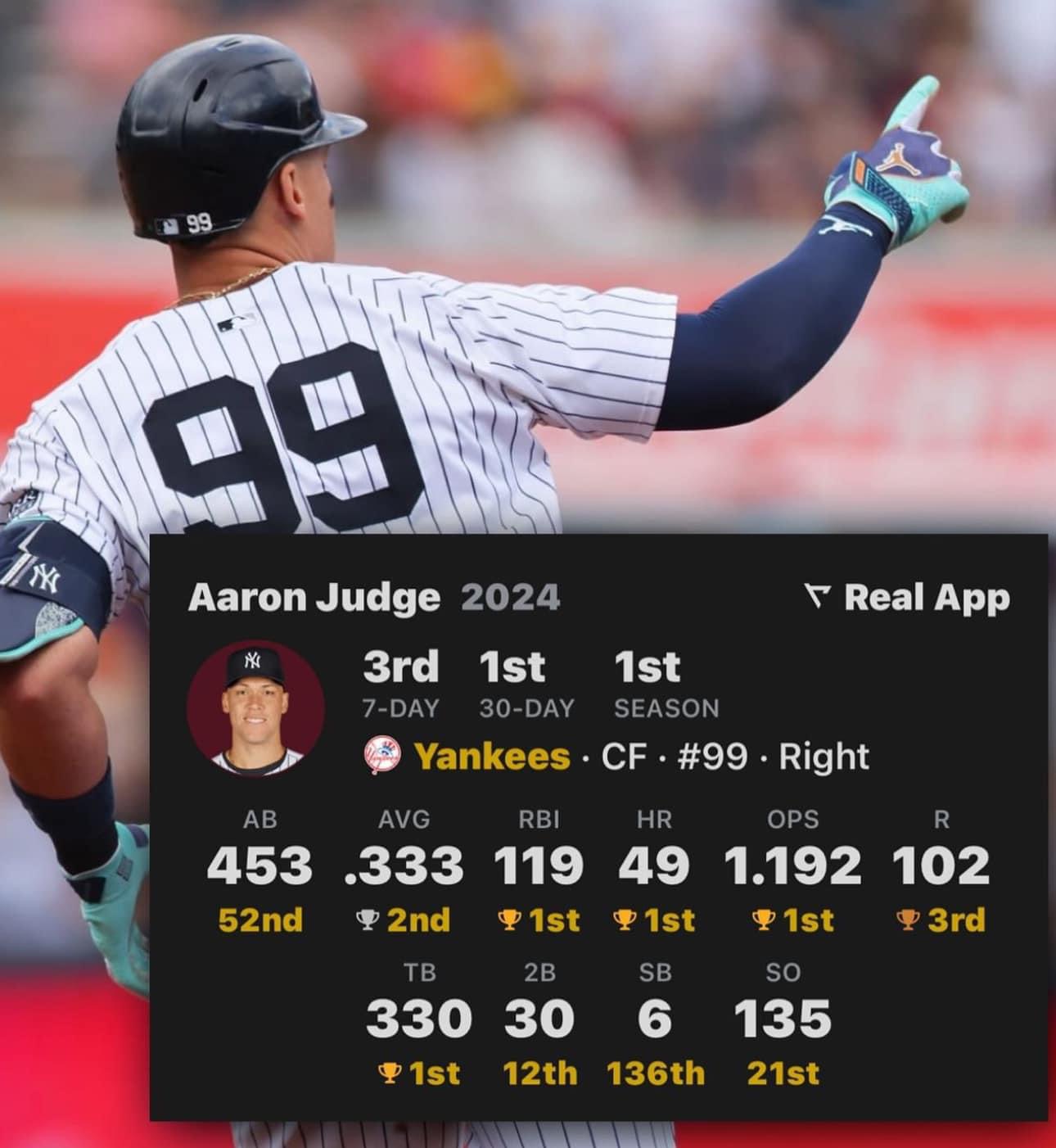 On another note, Aaron Judge hit his league leading 46th Home Run earlier and Juan Soto set a new career high with his 36th,