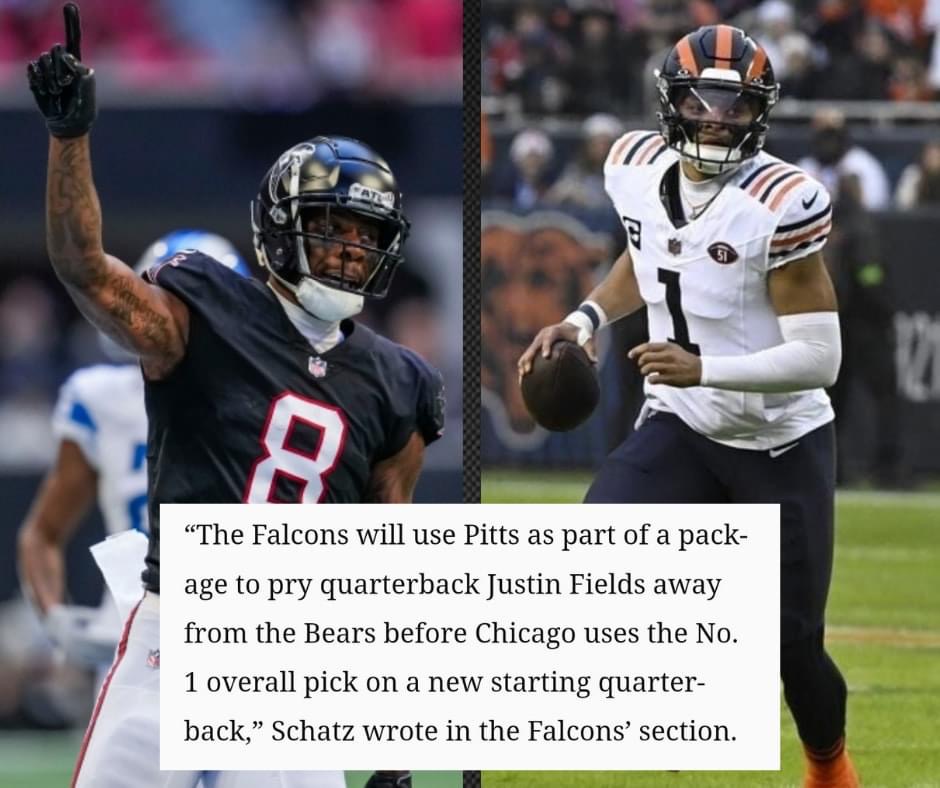 I’m not sure, I really like Pitts, and think if we had a coach who actually would use him, he be explosive as fuck. Looking at Fields numbers, he seems to avg 10 INTs a season(30 over 3 seasons) but looking at season by season numbers, that’s about right (10,11,9) so I mean, that is not that great. But other than his first season, he’s actually thrown more Touchdowns than INT. I’m still not sure if I’m sold on it. He’s got legs however and can probably improve. I’m just not sure if I want to get rid of Pitts who I think can be amazing if used properly. If they could get him without getting rid of Pitts, London, or Robinson, I be fine with it. But I doubt they could.