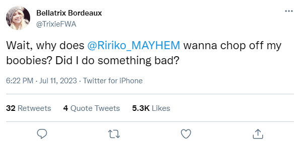 Despite the fact Ririko barely understood a word you said, haha. Yeah, I figured you two would get along. Shame she's going to chop your chest in at Back in Business ;)