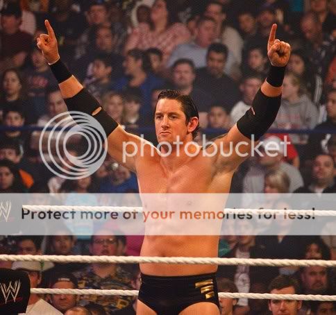 And with a pretty serious face, he walks slowly to the ring. However, he stops before the ring and looks at a beautiful girl in her mid-twenties. He takes the rose from his pockets, smells it, smiles cockily and gives the rose to the girl, who's visibly charmed. However, the crowd still keeps booing Barrett. He takes off the coat and throws it at the innocent officials around the ring. He turns and with a smug look on his face prepares for the bell to ring.