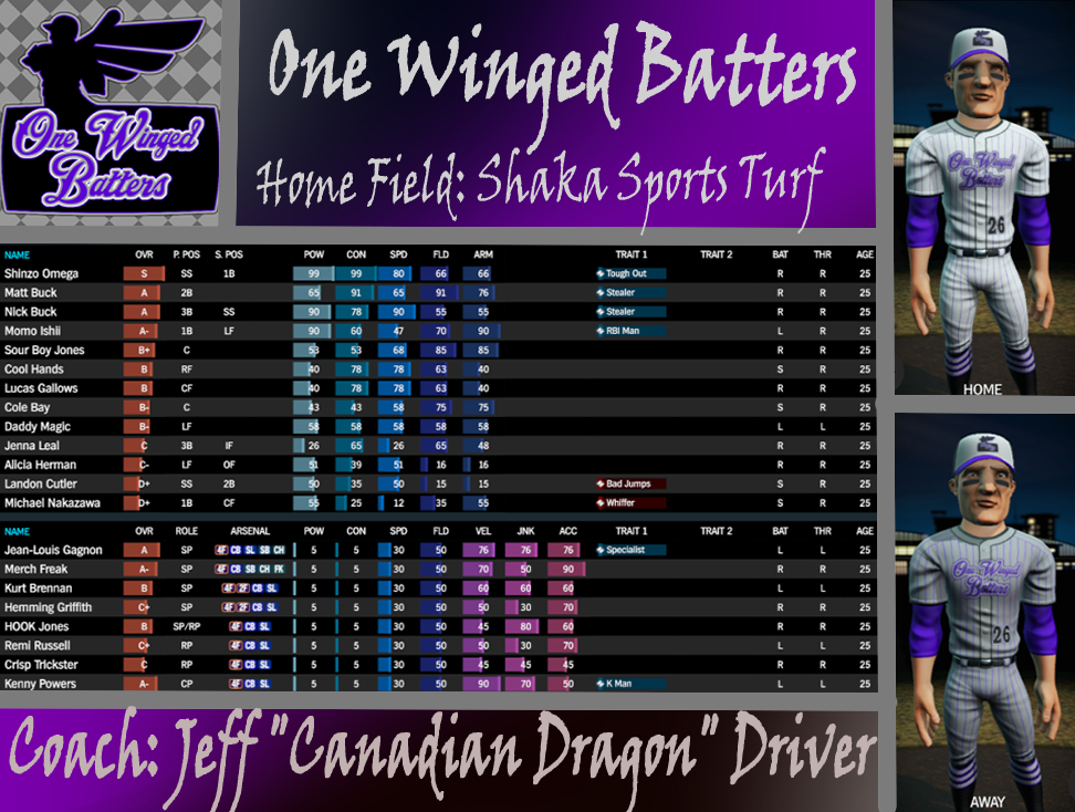 The next team I'll work on later tonight is the One Winged Batters with coach @Canadian Dragon