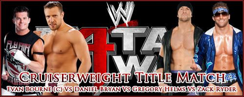 -Evan Bourne defeated Gregory Helms, Daniel Bryan & Zack Ryder in a Fatal 4 Way Match to RETAIN the Cruiserweight Championship